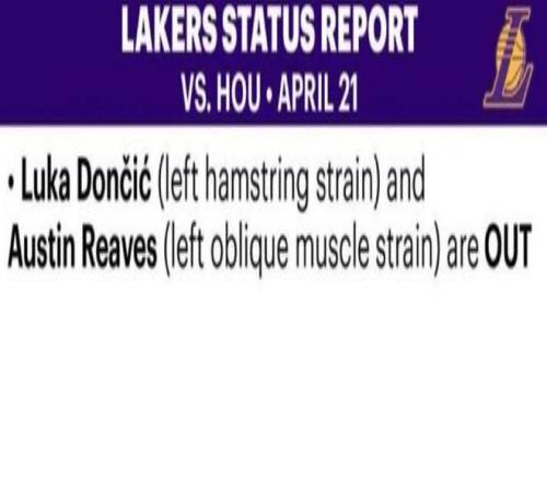 賽前湖人官方發布了系列賽G2的傷情報告,東契奇左腿腿筋拉傷,里夫斯左側腹斜肌拉傷都將繼續缺陣。