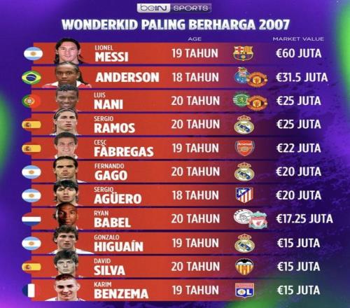 把這11人的后來發展綜合來看:梅西、拉莫斯、本澤馬、阿圭羅、席爾瓦、法布雷加斯、伊瓜因、納尼,足足8人都踢出了極高水平的職業生涯;安德森、加戈、巴貝爾屬于未能完全兌現天賦;真正讓人嚴重看走眼的案例幾乎沒有。也就是說,2007年的這份年輕球員身價排名,命中率極其亮眼。榜單最頂端的幾個人準確無誤,中后段也有大批人成長為豪門絕對主力。要把年輕時的“天賦”轉化為長期的“硬成績”,難度本身就極大,而這批人做到的比例,放在足壇任何一個年份都絕對名列前茅。